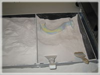 A 3D nyomtatás egyik fajtája a porból ragasztásos eljárás. Ennek során több vékony porrétegből épül fel a modellünk, a gép egy kar segítségével teríti egymásra azokat. A rétegvastagság állítható, a legvékonyabb, 0,089 mm-estől a legvastagabb, 0,1 mm-es rétegig.